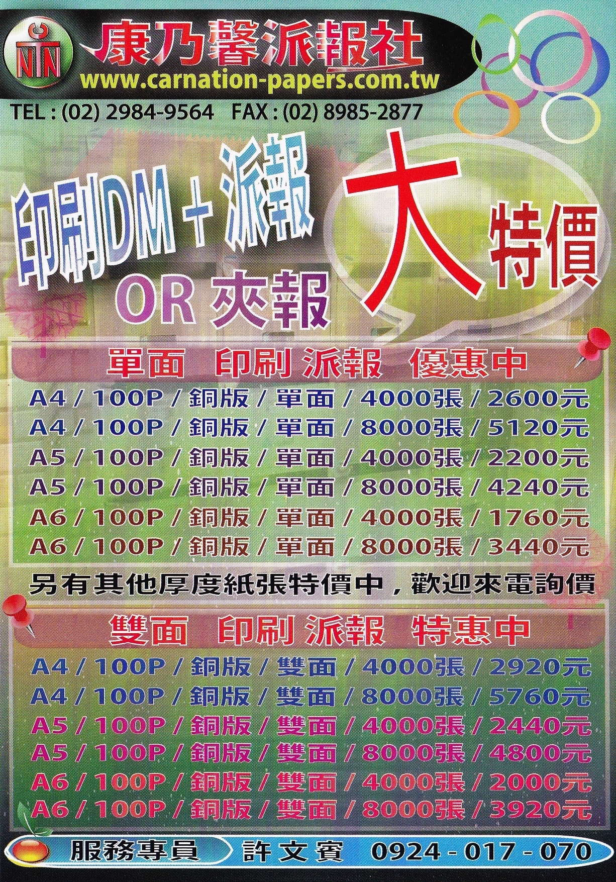 康乃馨派報社 -- 最新A6紙張做廣告最便宜